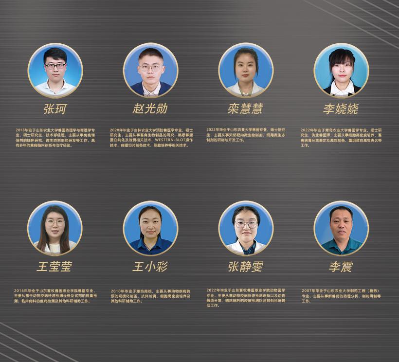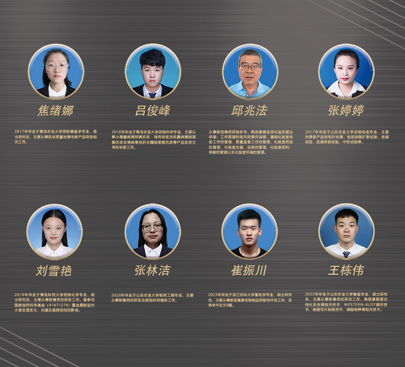 中國海洋大學博士,高級工程師,山東省畜牧獸醫職業學院客座教授,山東省獸醫協會理事,山東省畜牧獸醫學會理事,主要從事畜禽新型獸藥的研制與開發,先后承擔國家、省部級課題6項,獲得山東省中小企業科技進步一等獎1項,青島市科技進步獎二等獎2項,授權國家發明專利9項,發表學術論文11篇,其中SCI論文2篇。